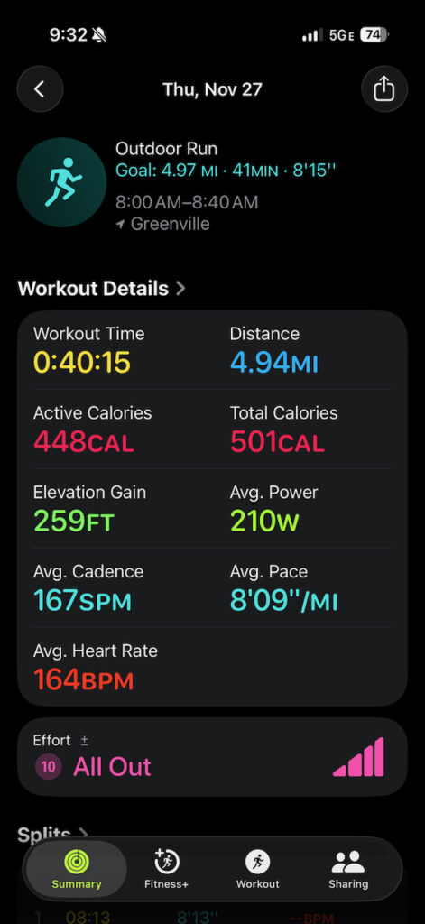 It’s officially been one year since I decided to train as a competitive runner—one year since I stopped winging it and started building real consistency. And on Thanksgiving morning, those steady miles and discipline all showed up in one massive way: