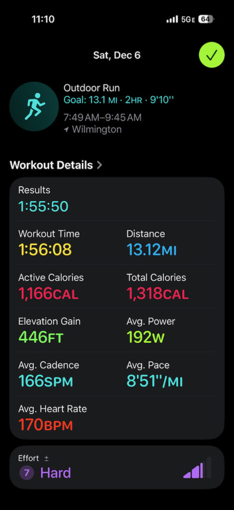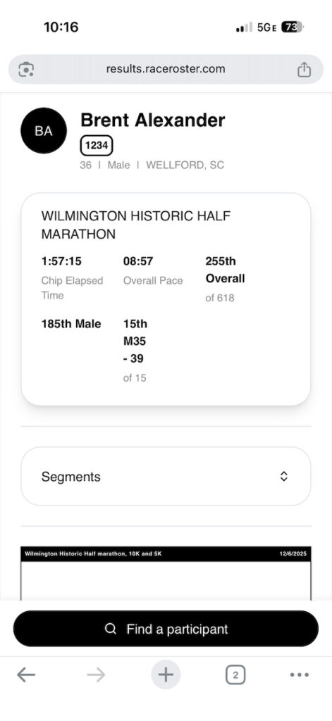 When I started this year, the goal was simple: run a half marathon. Somehow, it turned into two. Myrtle Beach in March was my first, and I crossed that finish line at a 2:19—proud to have done the thing. Wilmington in December told a very different story. I finished in 1:55–and I felt like I completely different runner.