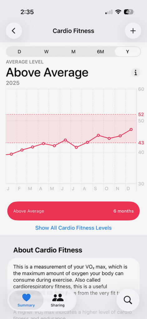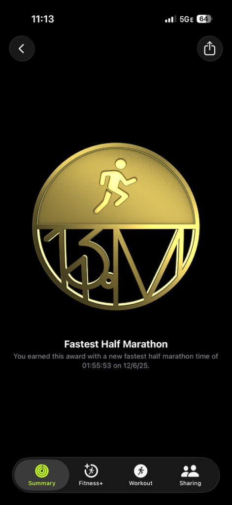 A 25-minute difference doesn’t come from luck. It comes from showing up consistently and learning to trust the process instead of fighting it. Somewhere along the way, I stopped forcing the pace and started flowing with it. My stride feels natural now. It shows in my cardio fitness and vO2 max.